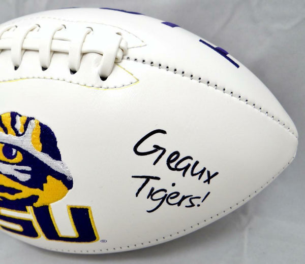 This is a hand autographed football of Brad Wing. This is a Louisiana State University Tigers Logo football. This item has a James Spence Witness Protection Authentication, which comes with a JSA numbered sticker and a matching JSA COA. You can view this item on the SpenceLOA website and it shows when and where the item was signed. It was signed either at a public autograph appearance or a Private Signing. This is a stock photo of the item. Although you may not receive this exact item, the item you receive is virtually identical and brand new in great shape. This is a hand autographed football of Brad Wing. This is a Louisiana State University Tigers Logo football. This item has a James Spence Witness Protection Authentication, which comes with a JSA numbered sticker and a matching JSA COA. You can view this item on the SpenceLOA website and it shows when and where the item was signed. It was signed either at a public autograph appearance or a Private Signing. This is a stock photo of the item. Although you may not receive this exact item, the item you receive is virtually identical and brand new in great shape.