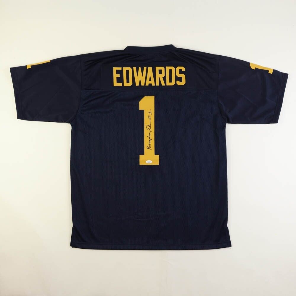 Custom on-field style jersey. Everything sewn on, size XL. Hand-signed by Braylon Edwards.The lot / autograph(s) includes an official James Spence Authentication (JSA) hologram and QR Code card for authenticity purposes. The signing of this item was witnessed by JSA.Authentication: JSA Hologram with QR Code card