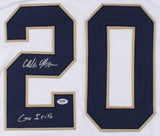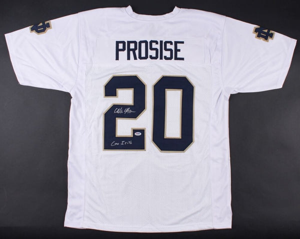 Custom on-field style jersey. Everything sewn on, size XL. Hand-signed and inscribed in silver paint pen by C.J. Prosise (Seahawks). The autograph includes a PSA/DNA "Rookie Graph" hologram and COA. "Rookie Graph" is the autographed memorabilia equivalent to a rookie card. The PSA/DNA definition of a "Rookie Graph" is as follows: "Any item that is autographed and received by PSA/DNA prior to the beginning of the athlete's second full season.Authentication: PSA COA