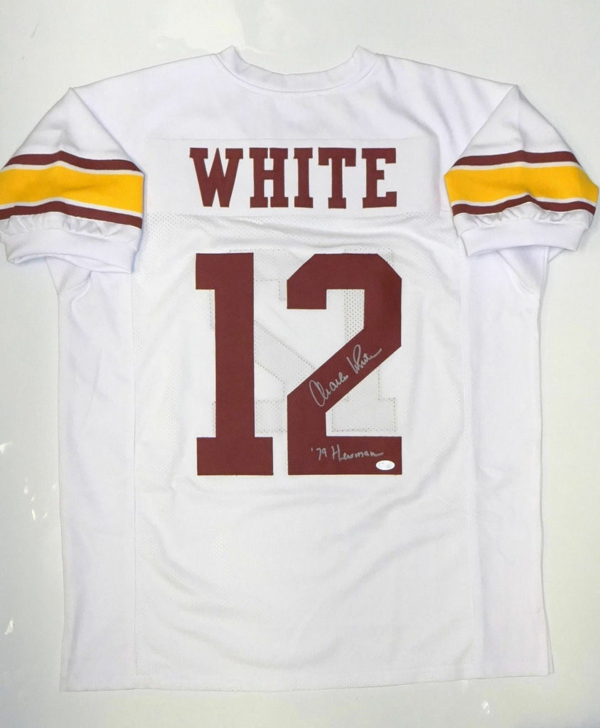 THIS IS NOT AN NCAA JERSEY. THIS HAS NO TAGS, NO LOGOS, NO EMBLEMS. This is a hand autographed Jersey of Charles White. This is Custom Made (Non Name Brand) Authentic Style (Stitched Letters and Numbers). This item has a James Spence Authentication, which comes with a JSA numbered sticker and a matching JSA COA. You can view this item on the SpenceLOA website. It was signed either at a public autograph appearance or a Private Signing. This is a stock photo of the item. Although you may not receive this exact item, the item you receive is virtually identical and brand new in great shape. THIS IS NOT AN NCAA JERSEY. THIS HAS NO TAGS, NO LOGOS, NO EMBLEMS. This is a hand autographed Jersey of Charles White. This is Custom Made (Non Name Brand) Authentic Style (Stitched Letters and Numbers). This item has a James Spence Authentication, which comes with a JSA numbered sticker and a matching JSA COA. You can view this item on the SpenceLOA website. It was signed either at a public autograph appearance or a Private Signing. This is a stock photo of the item. Although you may not receive this exact item, the item you receive is virtually identical and brand new in great shape.