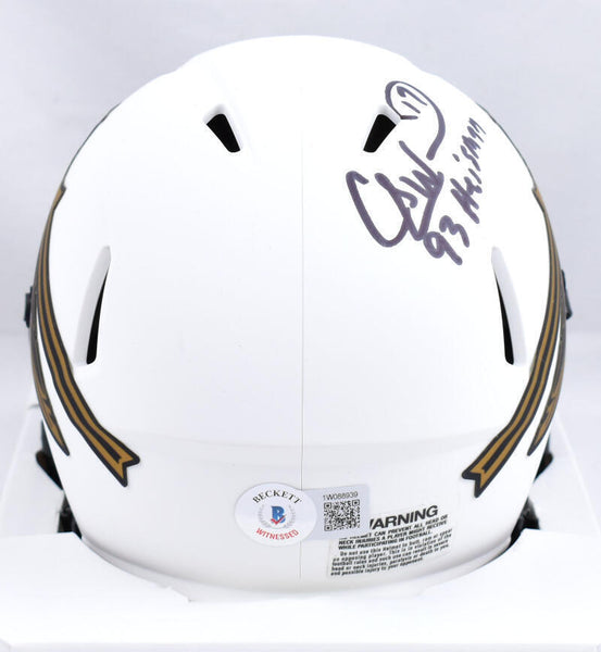 Charlie Ward Autographed Florida State Lunar Speed Mini Helmet w/93 Heisman-Beckett W Hologram *Black This is a hand autographed Helmet of Charlie Ward of the Florida State Seminoles. This is a Riddell Football Lunar Speed Mini Helmet. Inscribed 93 Heisman. This item has a Beckett Witnessed Authentication, which comes with a Beckett numbered hologram and a QR code for verification. You can view this item on the Beckett website and it shows when and where the item was signed. It was signed either at a public autograph appearance or a private signing. This is a stock photo of the item. Although you may not receive this exact item, the item you receive is virtually identical and brand new in great shape.