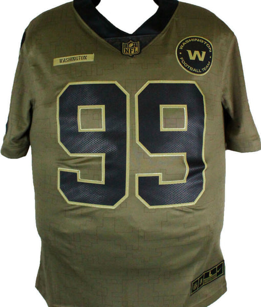 Chase Young Autographed Washington Football Team Salute to Service Nike Limited Jersey-Fanatics *Gold This is a Chase Young of the Washington Football Team Salute to Service Nike Limited jersey. This item has a Beckett Witnessed Authentication, which comes with a numbered sticker hologram and a QR code for verification. You can view this item on the Beckett Authentication website and it will tell you when and where it was signed. It was signed either at a public autograph appearance or a private signing. This is a stock photo of the item. Although you may not receive this exact item, the item you receive is virtually identical, brand new, and in great shape. Size XL.