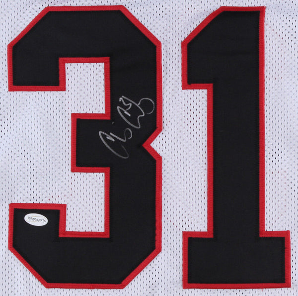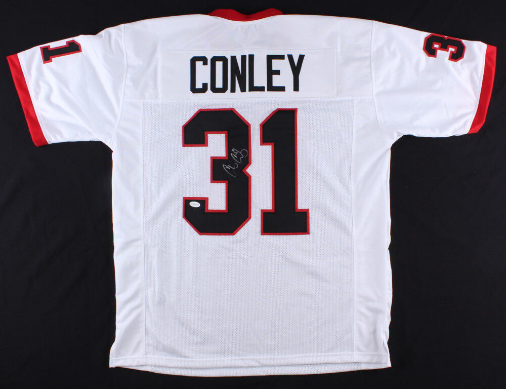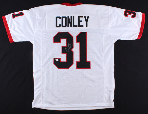 Custom on-field style jersey. Everything is sewn on, size XL. Hand-signed in silver felt-tip pen by Chris Conley (Chiefs). The lot / autograph(s) includes an official Total Sports Enterprises (TSE) hologram and matching COA for authenticity purposes. Authentication: Total Sports Enterprises COA