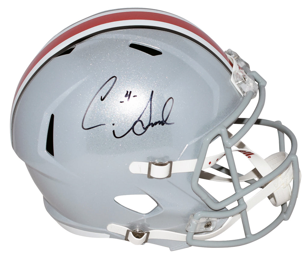 Curtis Samuel, former All-American for the Buckeyes, has hand signed this Ohio State Riddell Speed full-size replica helmet at a private signing. This item comes with a certificate of authenticity (COA) from Signature Sports Marketing, one of the leaders in the industry. You will receive a paper COA along with matching serial-numbered holograms.Item pictured may not be the exact item you will receive. It will be similar quality, and we guarantee your satisfaction.