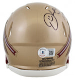 Riddell Florida State Seminoles speed mini helmet has been hand-signed in black Sharpie pen by Derrick Brooks (Tampa Bay Buccaneers, HOF). The lot / autograph(s) includes an official Beckett Authentication Services serially-numbered hologram for authenticity purposes. The signing of this item was witnessed by Beckett.Authentication: Beckett Hologram