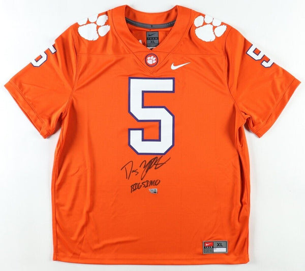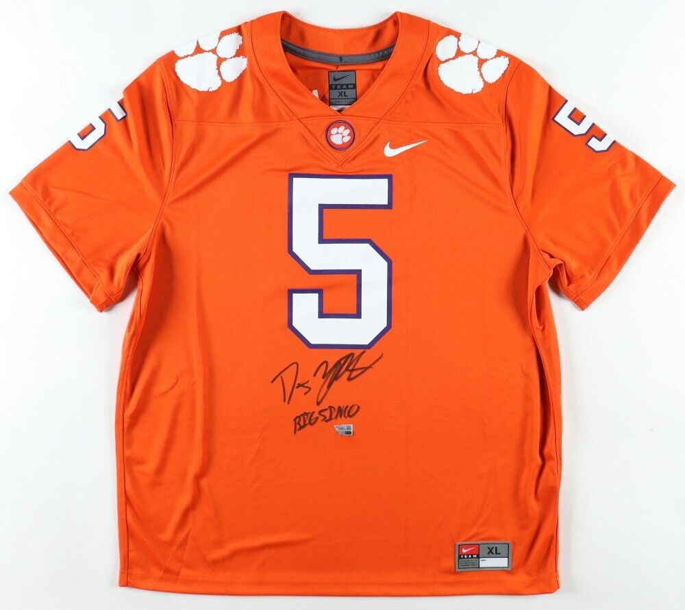 Nike NCAA Clemson Tigers jersey. Everything is sewn on, size adult Large. Hand-signed on the front of the jersey by DJ Uiagalelei.The lot / autograph(s) includes an official Fanatics hologram for authenticity purposes.Authentication: Fanatics Hologram