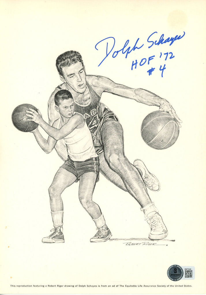 The number in the listing title is just an inventory sku for our records and is not the authentication number. This is the exact item that you will receive so please see pictures for condition. This is a 8x10 photo print that was personally autographed by Dolph Schayes. Includes a certificate of authenticity from Beckett Authentication Services (BAS) and Denver Autographs.
