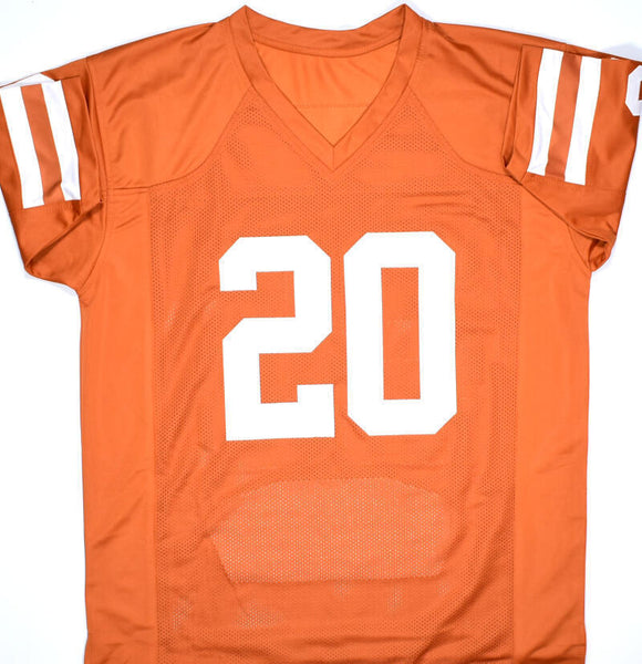 Earl Campbell Autographed Orange College Stat Style Jersey - Beckett W Hologram *Black THIS IS NOT AN NCAA JERSEY. THIS HAS NO TAGS, NO LOGOS, NO EMBLEMS. This is a hand autograph of Earl Campbell on a Custom Made (non name brand) Authentic Stat Style Jersey with stitched letters and numbers. This item has a Beckett Witnessed Authentication, which comes with a numbered hologram and a QR code for verification. You can view this item on the Beckett Authentication website, it shows when and where the item was signed. It was signed either at a public autograph appearance or a private signing. This is a stock photo of the item. Although you may not receive this exact item, the item you receive is virtually identical and brand new in great shape. Jersey size is XL.