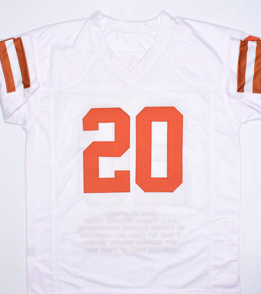 Earl Campbell Autographed White College Stat Style Jersey - Beckett W Hologram *Black THIS IS NOT AN NCAA JERSEY. THIS HAS NO TAGS, NO LOGOS, NO EMBLEMS. This is a hand autograph of Earl Campbell on a Custom Made (non name brand) Authentic Stat Style Jersey with stitched letters and numbers. This item has a Beckett Witnessed Authentication, which comes with a numbered hologram and a QR code for verification. You can view this item on the Beckett Authentication website, it shows when and where the item was signed. It was signed either at a public autograph appearance or a private signing. This is a stock photo of the item. Although you may not receive this exact item, the item you receive is virtually identical and brand new in great shape. Jersey size is XL.