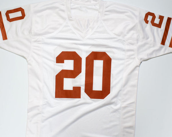 Earl Campbell Autographed White College Style Jersey *Light - Beckett W Hologram *Black THIS IS NOT AN NCAA JERSEY. THIS HAS NO TAGS, NO LOGOS, NO EMBLEMS. This is a hand autograph of Earl Campbell on a Custom Made (non name brand) Authentic Style Jersey with stitched letters and numbers. This item has a Beckett Witnessed Authentication, which comes with a numbered hologram and a QR code for verification. You can view this item on the Beckett Authentication website, it shows when and where the item was signed. It was signed either at a public autograph appearance or a private signing. This is a stock photo of the item. Although you may not receive this exact item, the item you receive is virtually identical and brand new in great shape. Jersey size is XL.