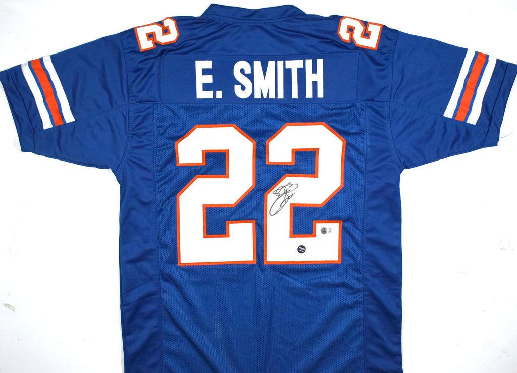 THIS IS NOT AN NCAA JERSEY. THIS HAS NO TAGS, NO LOGOS, NO EMBLEMS. This is an Emmitt Smith of the Florida Gators custom made (Non Name Brand) authentic style (Stitched Letters and Numbers) jersey. This item has a Beckett Witnessed Authentication, which comes with a numbered hologram and a QR code for verification. You can view this item on the Beckett website. It was signed either at a public autograph appearance or a private signing. This is a stock photo of the item. Although you may not receive this exact item, the item you receive is virtually identical, brand new, and in great shape. Jersey size is XL. THIS IS NOT AN NCAA JERSEY. THIS HAS NO TAGS, NO LOGOS, NO EMBLEMS. This is an Emmitt Smith of the Florida Gators custom made (Non Name Brand) authentic style (Stitched Letters and Numbers) jersey. This item has a Beckett Witnessed Authentication, which comes with a numbered hologram and a QR code for verification. You can view this item on the Beckett website. It was signed either at a public autograph appearance or a private signing. This is a stock photo of the item. Although you may not receive this exact item, the item you receive is virtually identical, brand new, and in great shape. Jersey size is XL.