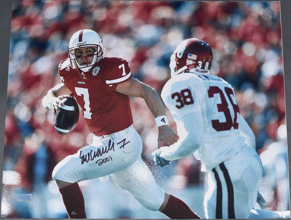 Eric Crouch, former Heisman Trophy winning quarterback for the Nebraska Cornhuskers, has hand signed this 16x20 photo at a private signing. This item comes with a certificate of authenticity (COA) from Signature Sports Marketing, one of the leaders in the industry. You will receive a paper COA along with matching serial-numbered holograms.Item pictured may not be the exact item you will receive. It will be similar quality, and we guarantee your satisfaction.
