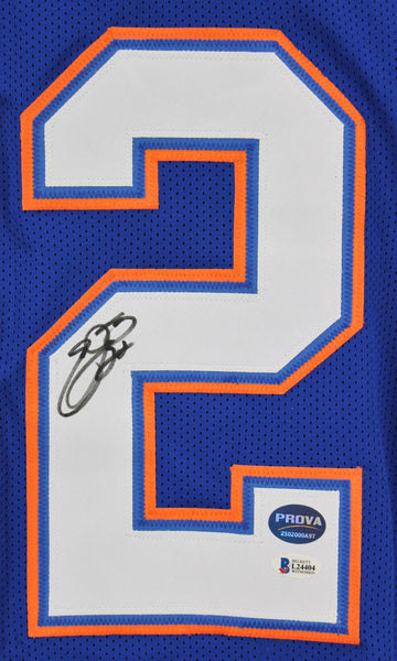 This Autographed Blue Jersey has been Personally Signed by Emmitt Smith of the Florida Gators. This item is 100% Authentic to include a hologram by Beckett Authentication Services. This item may come with the new Beckett Authentication hologram that has a scannable QR code rather than the traditional COA. If you would like to have a COA, you are welcome to reach out to Beckett for a printed certification once you receive your item. This is a BAS Witnessed Protection Program item which means a Beckett Authentication Service representative was present when this item was being signed. We conducted an autograph signing with Emmitt Smith where multiples of the same item were signed. While the photographs are representative of this item, the size, placement and strength of the signature may vary. Each item is hand signed, therefore, each autograph is unique This is a X-Large sized, non-branded, custom-stitched Jersey.