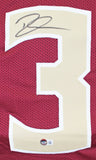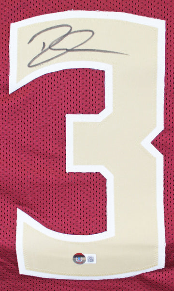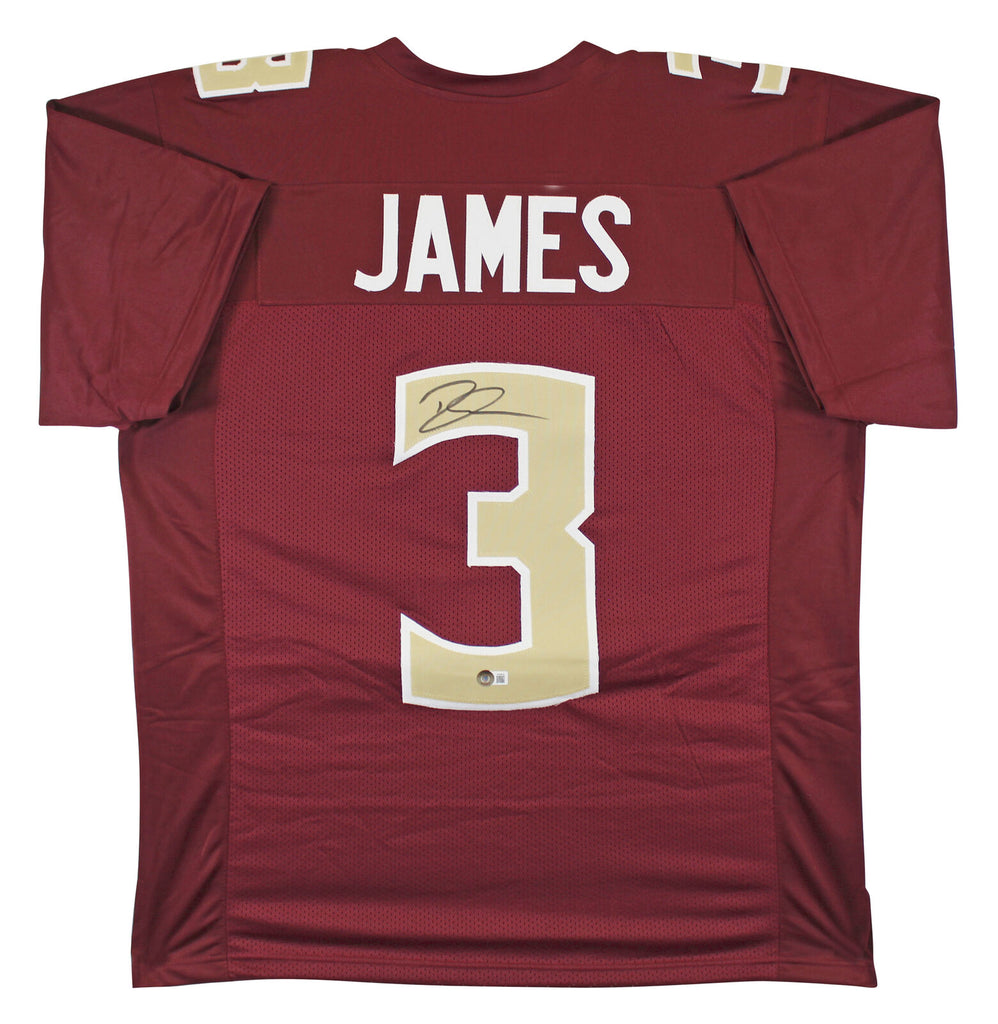 This Autographed Maroon Pro Style Jersey has been Personally Signed by Derwin James of the Florida State Seminoles. This item is 100% Authentic to include a hologram by Beckett Authentication Services. This item will come with an affixed Beckett Authentication Services (BAS) authentication sticker, which includes a scannable QR code to verify authenticity. Please note that Beckett no longer provides serial-numbered COA cards, and the attached BAS sticker will serve as the complete authentication for this item. This is a BAS Witnessed Protection Program item which means a Beckett Authentication Service representative was present when this item was being signed. We have multiples of this same item. While the photographs are representative of this item, the size, placement and strength of the signature may vary. Each item is hand signed, therefore, each autograph is unique. This is a X-Large sized, non-branded, custom-stitched Jersey.