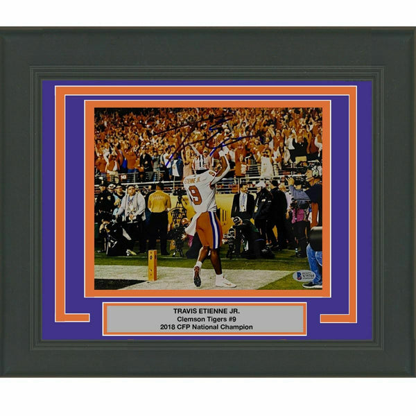 FRAMED Autographed/Signed TRAVIS ETIENNE JR Clemson 8x10 Photo Beckett COA #2 The item is professionally framed & matted and is ready to be hung in your man cave! NOTE: COA card, if applicable, will be mounted on the back of the frame. Please allow up to 5 business days for the item to be framed, packaged safely, and picked up by UPS. Nameplate and matting requests can be made.