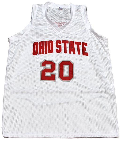 Greg Oden, former All-American center for the Ohio State Buckeyes, has hand signed this white custom jersey at a private signing. Jersey is size XL and all letters/numbers are sewn-on. This item is authenticated by Beckett Authentication Services and was signed in the presence of one of their representatives. Their tamper-evident hologram featuring a QR code and serial number is on the item. The authenticity can be verified online by entering the serial number or scanning the QR code.Item pictured may not be the exact item you will receive. It will be similar quality, and we guarantee your satisfaction.