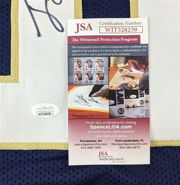 Custom on-field style jersey. Everything is sewn on, size XL. Hand-signed in black felt-tip pen by Ian Book. The lot / autograph(s) includes an official James Spence Authentication serially numbered hologram and matching COA for authenticity purposes. The signing of this item was witnessed by JSA.Authentication: JSA COA