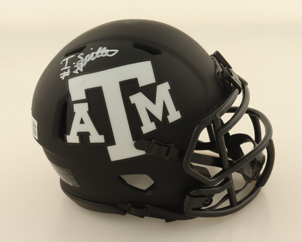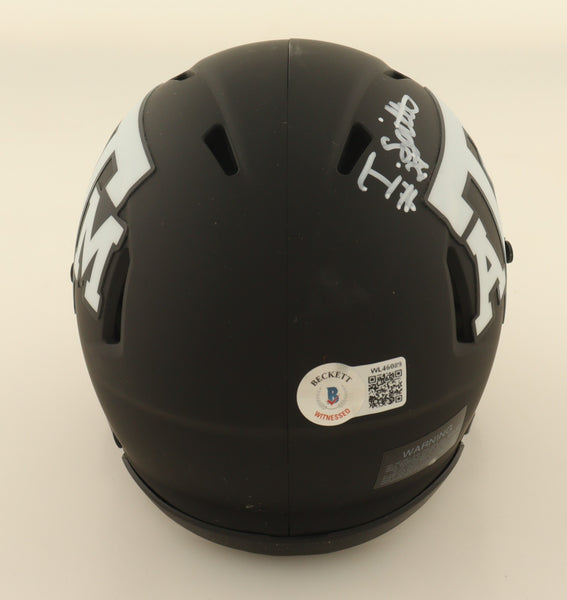 Riddell Texas A&M Aggies Speed mini helmet. Hand-signed by Isaiah Spiller.The autograph includes an official Beckett Authentication Services serially numbered scannable hologram and QR Code Card for authenticity purposes. The signing of this item was witnessed by Beckett.Authentication: Beckett Scannable Hologram with QR Code Card