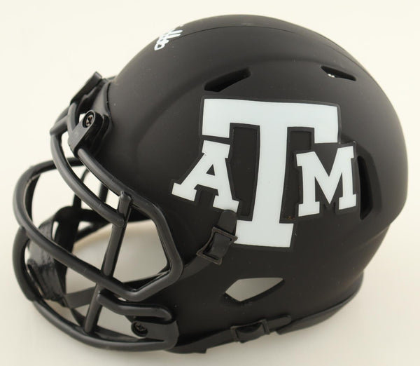 Riddell Texas A&M Aggies Speed mini helmet. Hand-signed by Isaiah Spiller.The autograph includes an official Beckett Authentication Services serially numbered scannable hologram and QR Code Card for authenticity purposes. The signing of this item was witnessed by Beckett.Authentication: Beckett Scannable Hologram with QR Code Card