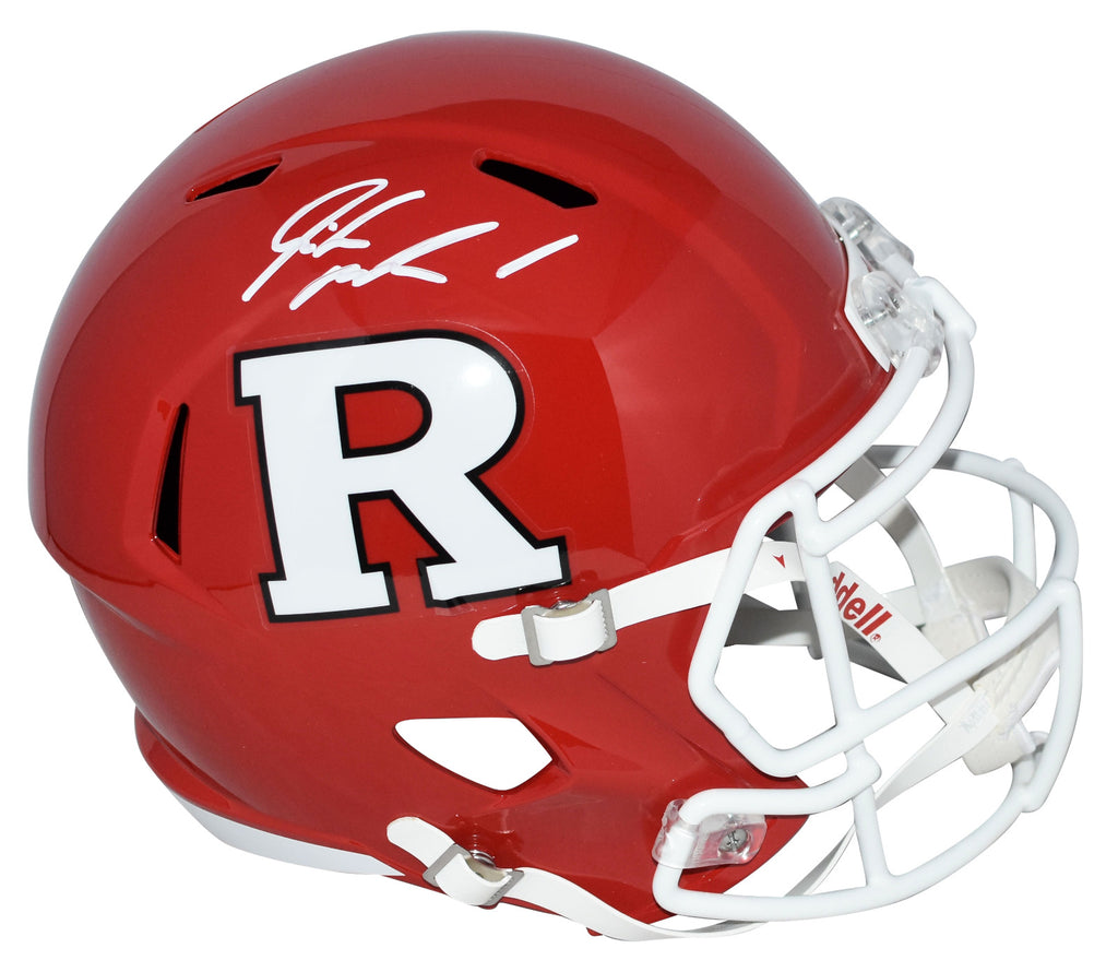 Isiah Pacheco, former star running back for the Scarlet Knights, has hand signed this Rutgers Riddell Speed full-size replica helmet at a private signing. This item is authenticated by Beckett Authentication Services and was signed in the presence of one of their representatives. Their tamper-evident hologram featuring a QR code and serial number is on the item. The authenticity can be verified online by entering the serial number or scanning the QR code.Item pictured may not be the exact item you will receive. It will be similar quality, and we guarantee your satisfaction.