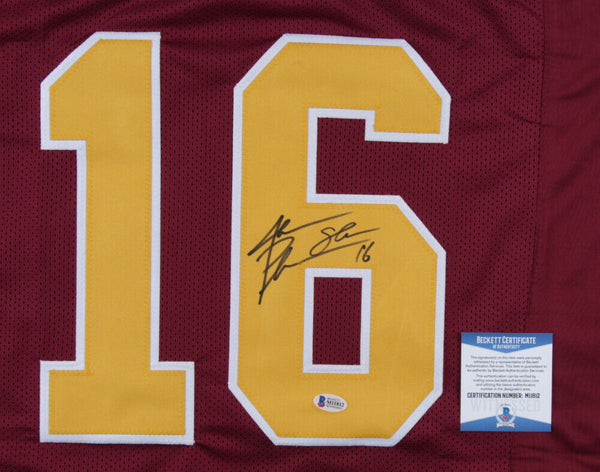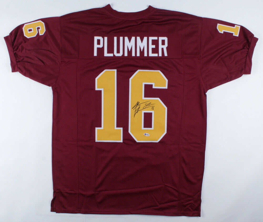 Custom on-field style jersey. Everything is sewn on, size XL. Jersey has been hand-signed and inscribed in black felt tip pen by Jake Plummer. The lot / autograph(s) includes an official Beckett Authentication Services serially-numbered hologram and matching COA for authenticity purposes. The signing of this item was witnessed by Beckett.Authentication: Beckett COA