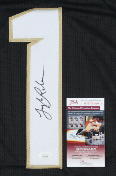 Custom on-field style jersey. Everything sewn on, size XL. Hand-signed by Jaylon Robinson.The lot / autograph(s) includes an official James Spence Authentication (JSA) hologram and matching COA for authenticity purposes. The signing of this item was witnessed by JSA.Authentication: JSA COA Shop our ebay store / Friendly Confines Collectibles for thousands of different autographed jerseys