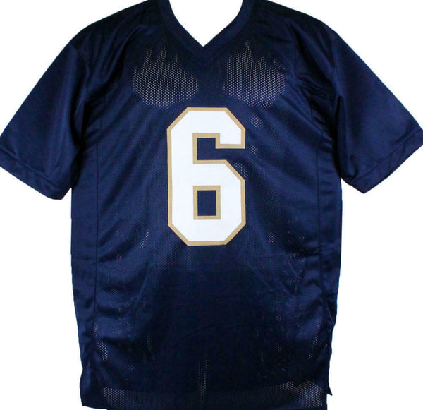 Jeremiah Owusu-Koramoah Autographed Blue College Style Jersey w/ Insc- BA W Hologram THIS IS NOT AN NCAA JERSEY. THIS HAS NO TAGS, NO LOGOS, NO EMBLEMS. This is a Jeremiah Owusu-Koramoah of Notre Dame Fighting Irish hand autographed custom made (Non Name Brand) authentic style (Stitched Letters and Numbers) jersey. Inscribed Play Like a Champ Today. This item has a Beckett Authentication, which comes with a numbered sticker hologram and a generic Beckett Certificate of Authenticity. You can view this item on the Beckett authentication website. It was signed either at a public autograph appearance or a private signing. Although you may not receive this exact item, the item you receive is virtually identical, brand new, and in great shape. Jersey size is XL.
