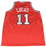 Jerry Lucas, former All-American for the Ohio State Buckeyes, has hand signed this red custom jersey at a private signing. He included the inscription "1960 Champs" with his signature. Jersey is size XL and all letters/numbers are sewn-on. This item is authenticated by Beckett Authentication Services and was signed in the presence of one of their representatives. Their tamper-evident hologram featuring a QR code and serial number is on the item. The authenticity can be verified online by entering the serial number or scanning the QR code.Item pictured may not be the exact item you will receive. It will be similar quality, and we guarantee your satisfaction.