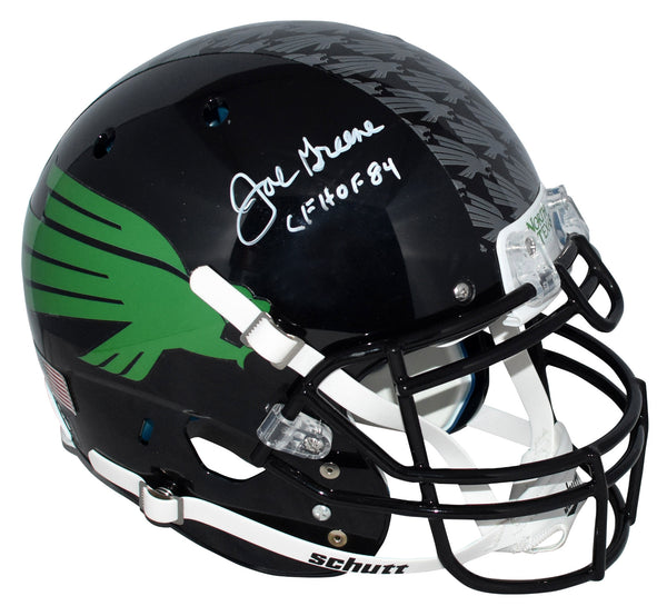 Joe Greene, former All-American defensive tackle for the Mean Green, has hand signed this North Texas Schutt full-size authentic helmet at a private signing. This helmet is fully padded inside like the ones worn on the field. This item is authenticated by Beckett Authentication Services and was signed in the presence of one of their representatives. Their tamper-evident hologram featuring a QR code and serial number is on the item. The authenticity can be verified online by entering the serial number or scanning the QR code.Item pictured may not be the exact item you will receive. It will be similar quality, and we guarantee your satisfaction.