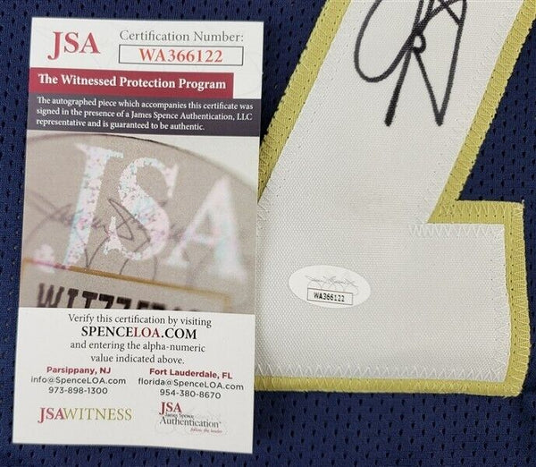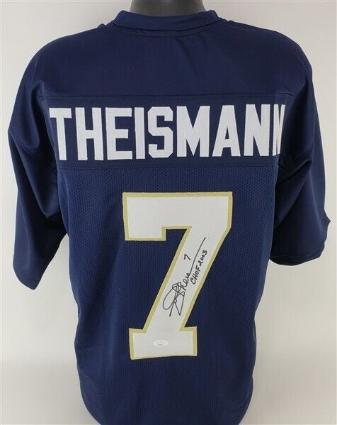 Custom on-field style jersey. Everything is sewn on, size XL. Hand-signed and inscribed in black felt-tip pen by Joe Theismann (Redskins). The autograph includes an official James Spence Authentication (JSA) hologram and matching COA for authenticity purposes. The signing of this item was witnessed by JSA.Authentication: JSA COA