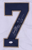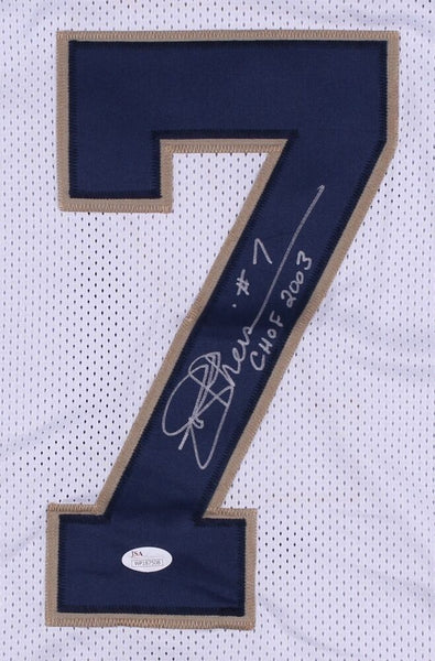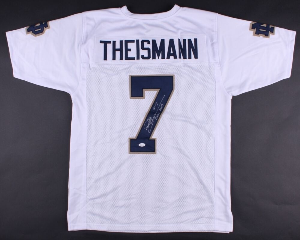 Custom on-field style jersey. Everything is sewn on, size XL. Hand-signed and inscribed in Silver felt-tip pen by Joe Theismann (Redskins). The autograph includes an official James Spence Authentication (JSA) hologram and matching COA for authenticity purposes. The signing of this item was witnessed by JSA.Authentication: JSA COA