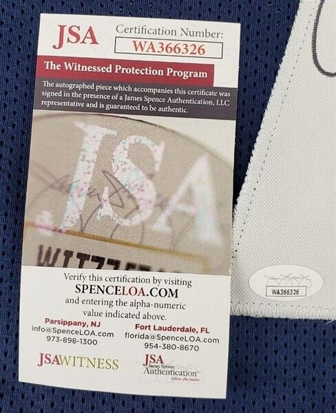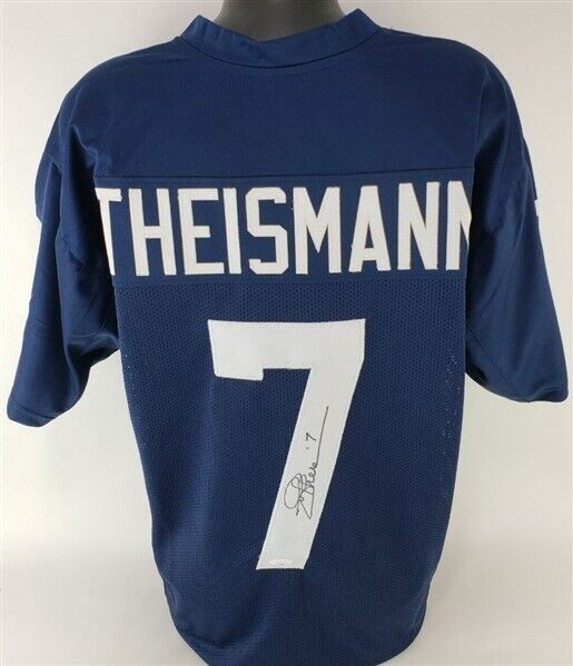 Custom on-field style jersey. Everything is sewn on, size XL. Hand-signed and inscribed in black felt-tip pen by Joe Theismann (Redskins). The autograph includes an official James Spence Authentication (JSA) hologram and matching COA for authenticity purposes. The signing of this item was witnessed by JSA.Authentication: JSA COA