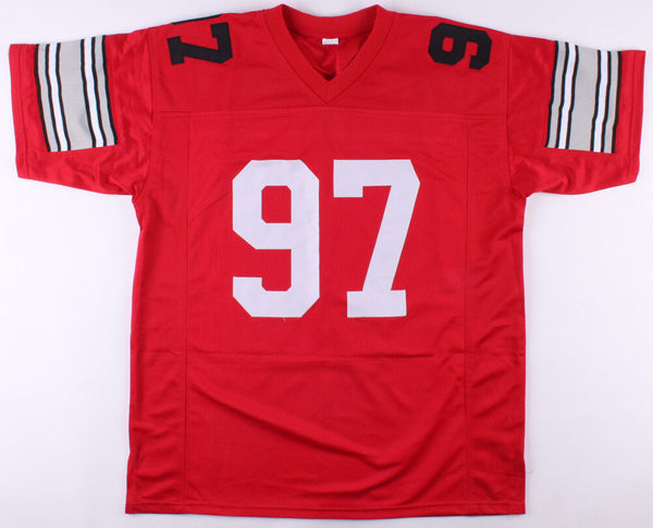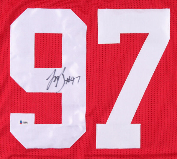 Custom on-field style jersey. Everything is sewn on, size XL. Hand-signed in black felt-tip pen by Joey Bosa (San Diego Chargers). The lot / autograph(s) includes an official Beckett hologram and matching COA for authenticity purposes. Authentication: Beckett COA
