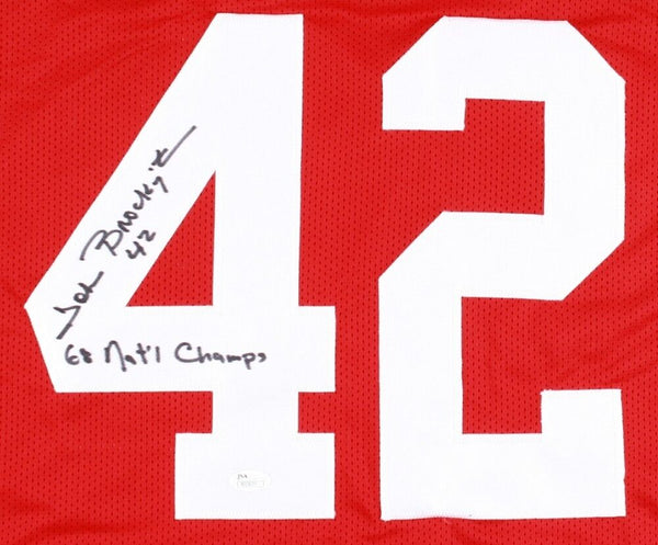 Custom on-field style jersey. Everything sewn on, size XL. Has been hand-signed and inscribed by John Brockington.The lot / autograph(s) includes an official James Spence Authentication (JSA) hologram and matching COA for authenticity purposes. Authentication: JSA COA