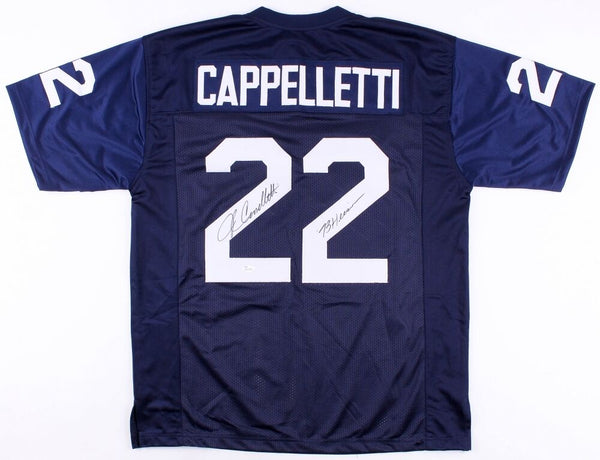 Custom on-field style jersey. Everything is sewn on, size XL. Hand-signed and inscribed in black felt-tip pen by John Cappelletti (Rams). The autograph includes an official James Spence Authentication (JSA) hologram and matching COA for authenticity purposes. The signing of this item was witnessed by JSA.Authentication: JSA COA