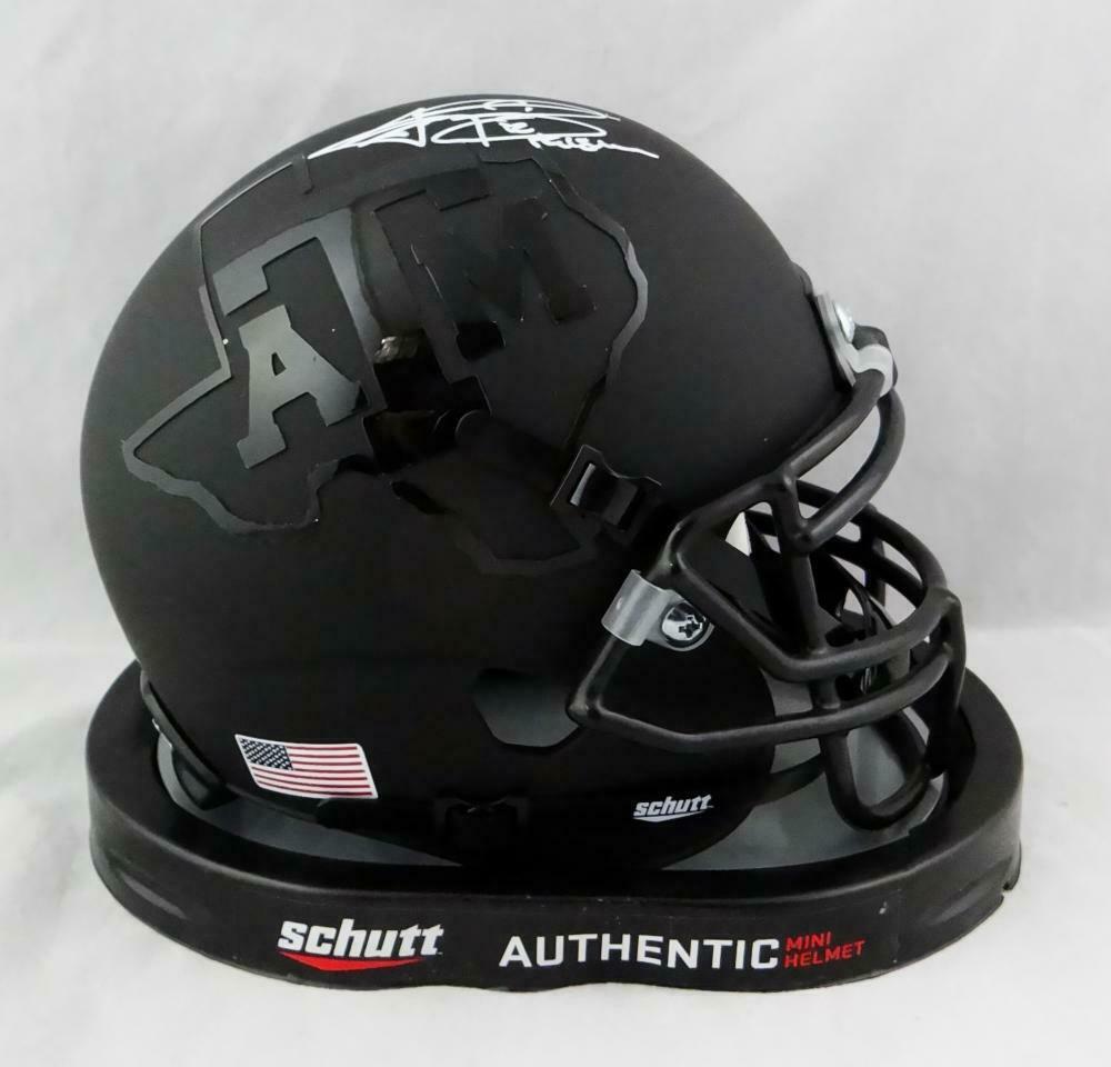Johnny Manziel Heisman Signed A&M Aggies BlK Schutt Mini Helmet- JSA W Auth *W This is a Hand Autographed Helmet of Johnny Manziel of The Texas A&M Aggies. This is a Schutt Football Mini Helmet. This item has a James Spence Witness Protection Authentication, which Comes with a JSA #'ed Sticker and a Matching JSA COA. You can view this item on the SpenceLOA website and it shows when and where the item was signed. It was signed either at a public autograph appearance or a Private Signing. This is a stock photo of the item. Although you may not receive this exact item, the item you receive is virtually identical and brand new in great shape.
