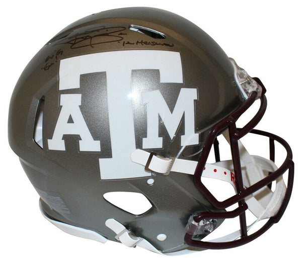 Johnny Manziel Signed Texas A&M Aggies Authentic Flash Helmet Beckett 35372 The number in the listing title is just an inventory sku for our records and is not the authentication number. The item pictured is a stock photo unless otherwise noted. This is a Texas A&M Aggies full size authentic flash speed helmet that was personally autographed by Johnny Manziel with Heisman and Gig Em inscriptions. Includes a certificate of authenticity from Beckett Authentication Services (BAS) and Denver Autographs.
