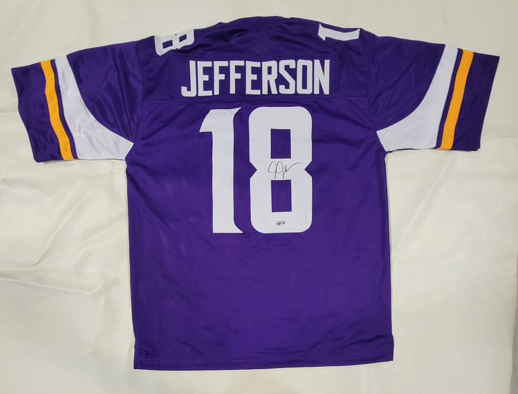 JUSTIN JEFFERSON AUTOGRAPHED / SIGNED PRO STYLE CUSTOM JERSEY WITH BECKETT WITNESSED COA