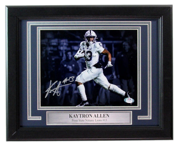 Kaytron Allen Autographed 8x10 Photo Penn State Framed. The outer frame size is 18 inches x 22 inches. This photo is authenticated by PSA/DNA and includes their Tamper-proof Hologram Sticker and Certificate of Authenticity.