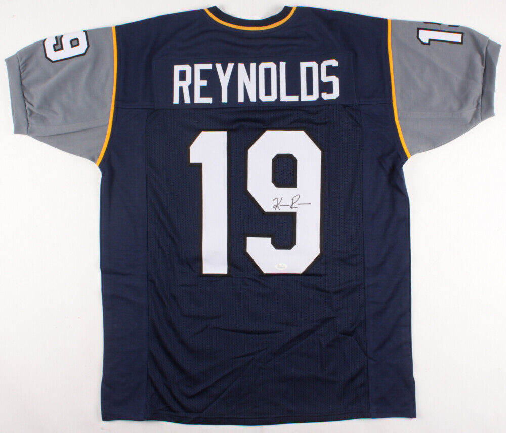 Custom on-field style jersey. Everything sewn on, size XL. Hand-signed in black felt-tip pen by Keenan Reynolds. The lot / autograph(s) includes an official James Spence Authentication (JSA) hologram and matching COA for authenticity purposes. The signing of this item was witnessed by JSA.Authentication: JSA COA