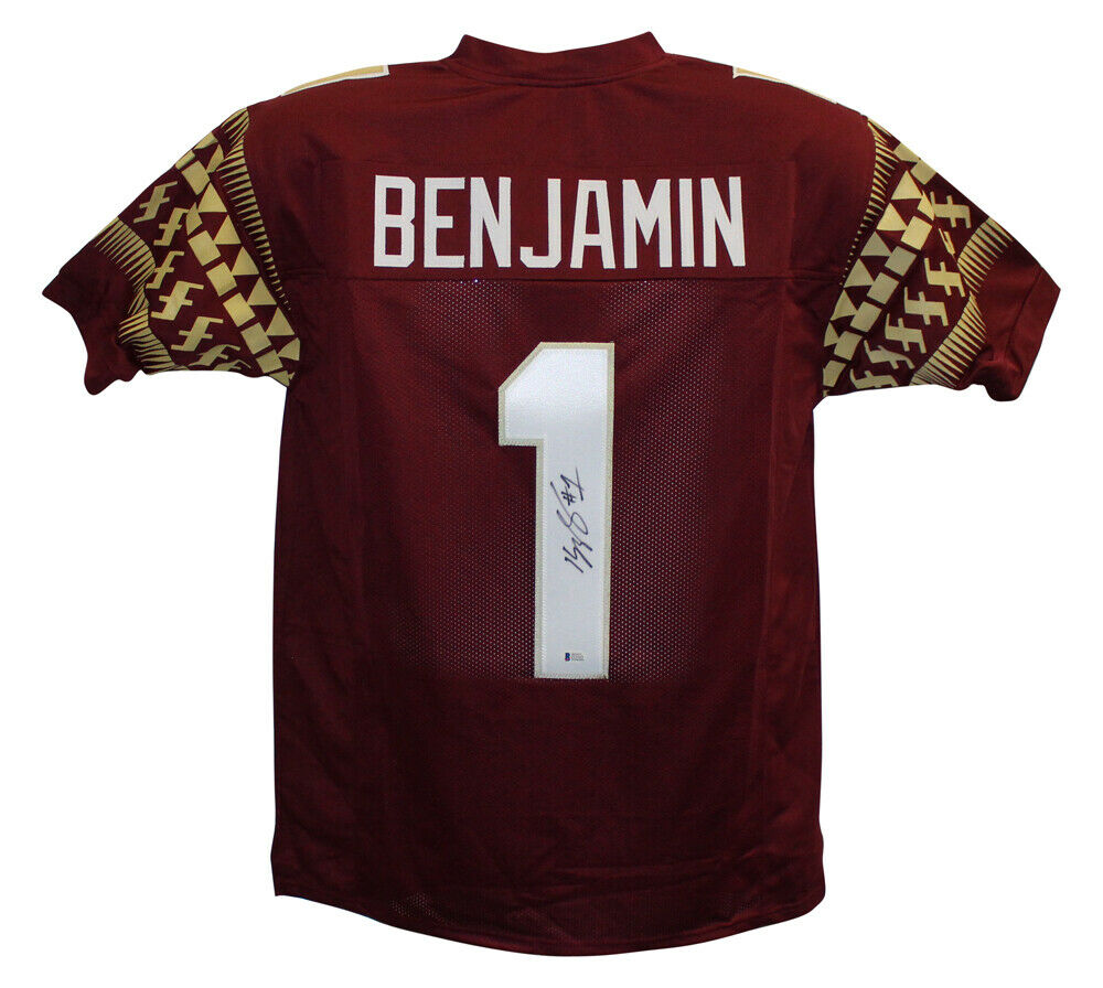 Kelvin Benjamin Autographed/Signed College Style Maroon XL Jersey BAS 26841 This is a custom college style maroon XL jersey with sewn on name and numbers that was personally autographed by Kelvin Benjamin. This jersey includes a certificate of authenticity from Beckett Authentication Services (BAS) and Denver Autographs.