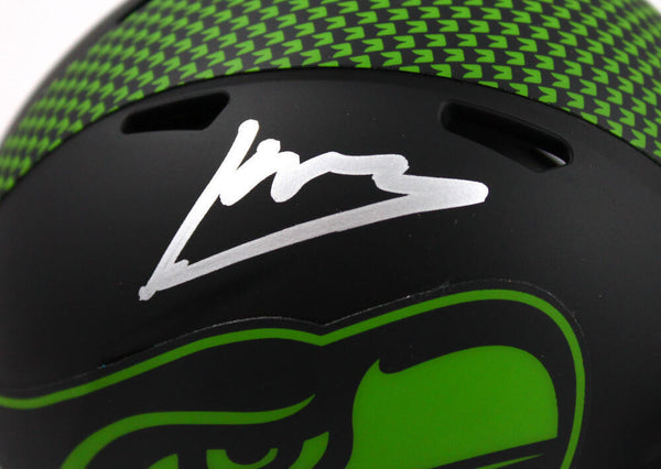 Kenneth Walker III Autographed Seattle Seahawks Eclipse Speed Mini Helmet-Beckett W Hologram *Silver This is a Kenneth Walker III of the Seattle Seahawks hand autographed Riddell Football Eclipse Speed Mini Helmet. It has a Beckett Witnessed Authentication, which comes with a numbered sticker hologram and a QR code for verification. You can view this item on the Beckett website and it shows when and where the item was signed. It was signed either at a public autograph appearance or a private signing. This is a stock photo of the item. Although you may not receive this exact item, the item you receive is virtually identical, brand new, and in great shape.