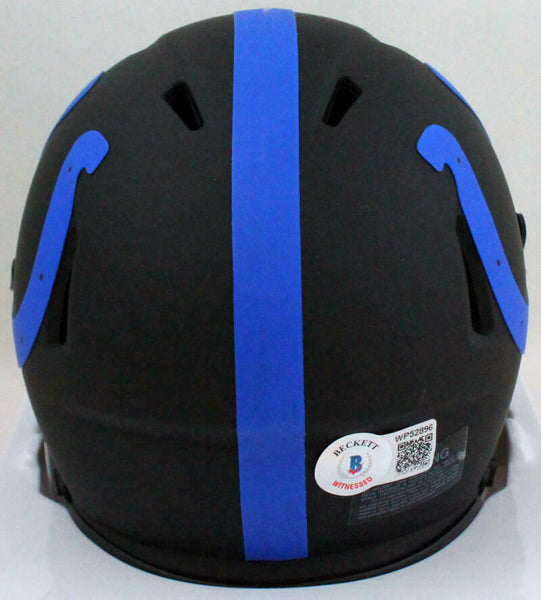 Kwity Paye Autographed Colts Eclipse Speed Mini Helmet-Beckett W Hologram *Silver This is a Hand Autograph of Kwity Paye of the Colts on a Riddell Football Eclipse Speed Mini Helmet. This item has a Beckett Witness Authentication, which comes with a Beckett numbered hologram and a generic Beckett Certificate of Authenticity. You can view this item on the Beckett website, it shows when and where the item was signed. It was signed either at a public autograph appearance or a private signing. This is a stock photo of the item. Although you may not receive this exact item, the item you receive is virtually identical and brand new in great shape.