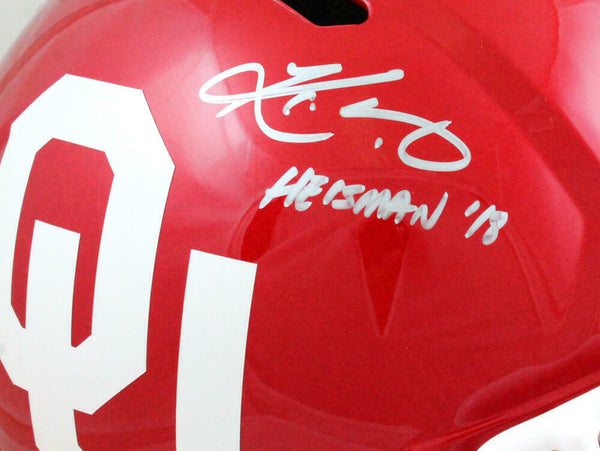 Kyler Murray Autographed Oklahoma Sooners F/S Speed Helmet w/ HT- Beckett W Auth *Silver This is a hand autograph of Kyler Murray of the Oklahoma University Sooners on a Riddell Football Full Size Speed Replica Helmet and inscribed with '18 HT. This item has a Beckett Witnessed Authentication, which comes with a numbered sticker and a matching Beckett Certificate of Authenticity. You can view this item on the Beckett Authentication website, it shows when and where the item was signed. It was signed either at a public autograph appearance or a private signing. This is a stock photo of the item. Although you may not receive this exact item, the item you receive is virtually identical and brand new in great shape.