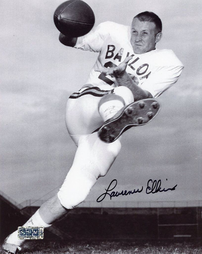 Lawrence Elkins, former All-American wide receiver for the Baylor Bears, has hand signed this 8x10 photo at a private signing. This item comes with a certificate of authenticity (COA) from Signature Sports Marketing, one of the leaders in the industry. You will receive a paper COA along with matching serial-numbered holograms.Item pictured may not be the exact item you will receive. It will be similar quality, and we guarantee your satisfaction.