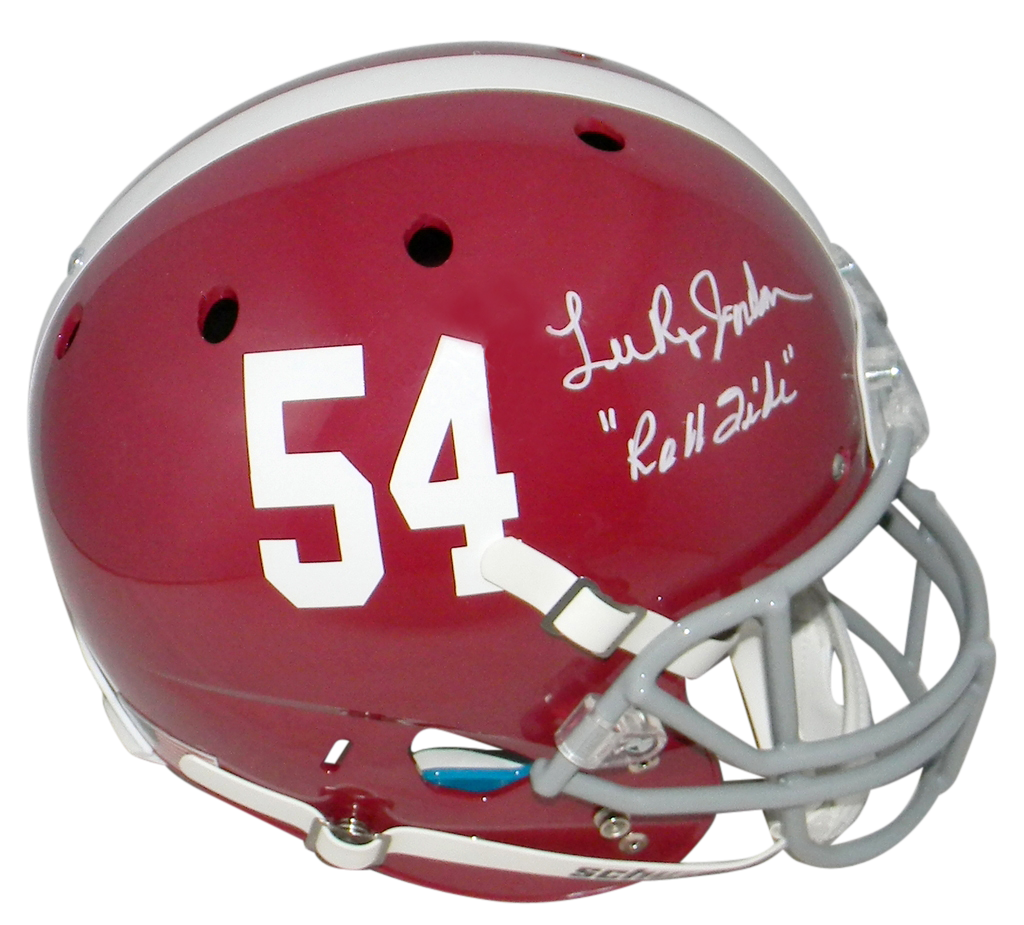 Lee Roy Jordan, former All-American linebacker for the Crimson Tide, has hand signed this Alabama Schutt full-size replica helmet at a private signing. He included the inscription "Roll Tide" with his signature. This item comes with a certificate of authenticity (COA) from Signature Sports Marketing, one of the leaders in the industry. You will receive a paper COA along with matching serial-numbered holograms.Item pictured may not be the exact item you will receive. It will be similar quality, and we guarantee your satisfaction.