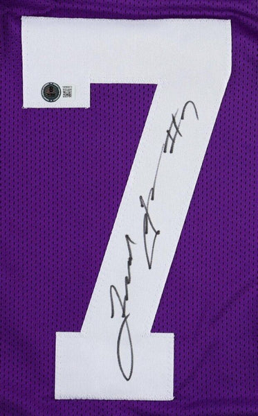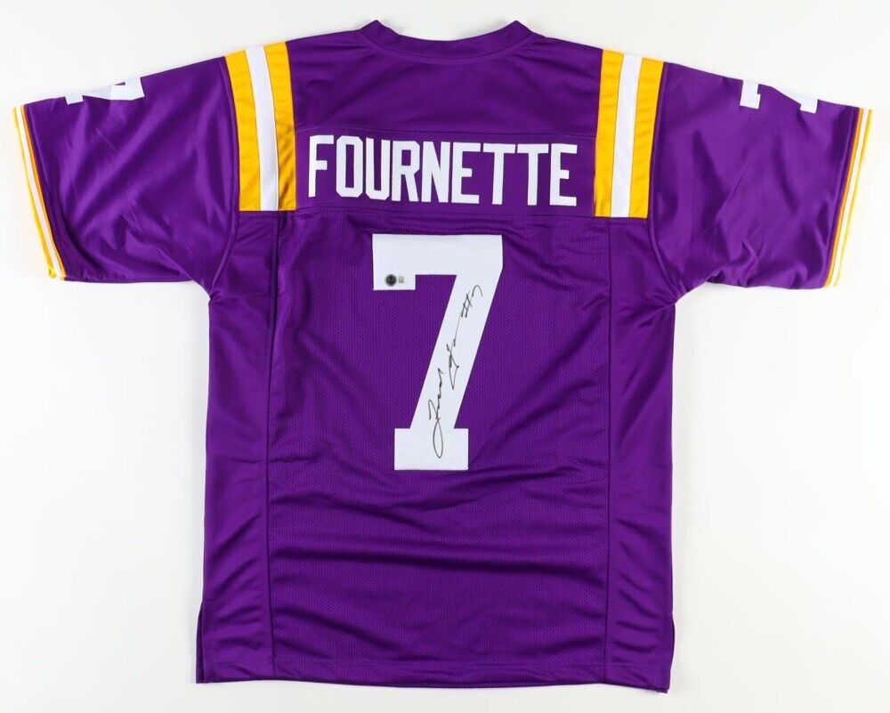 Custom on-field style jersey. Everything is sewn on, size XL. Has been hand-signed by Leonard Fournette.The autograph includes an official Beckett Authentication Services serially-numbered hologram and QR Code Card for authenticity purposes.Authentication: Beckett Hologram & QR Code card