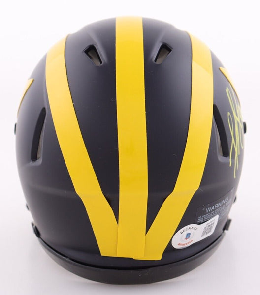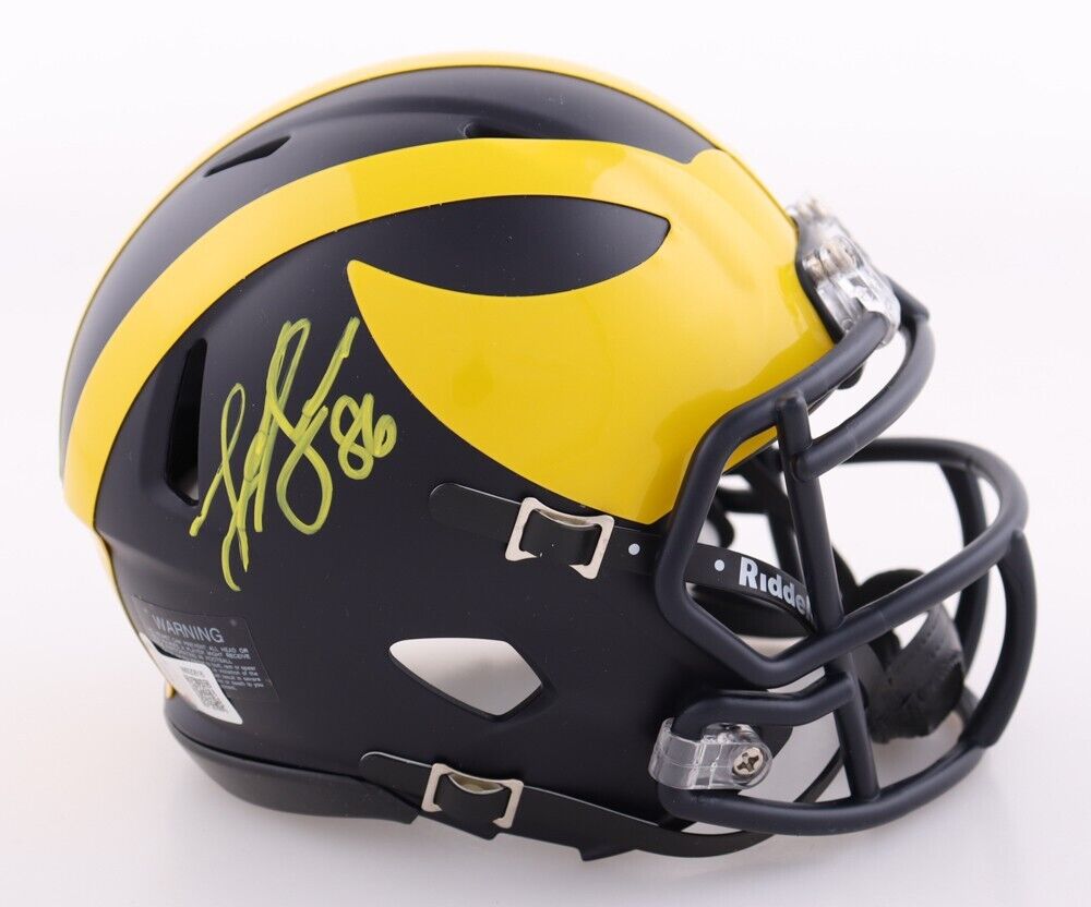 Riddell Michigan Wolverines Speed Mini Helmet has been hand-signed by Luke Schoonmaker.The autograph includes an official Beckett Authentication Services serially numbered hologram for authenticity purposes. The signing of this item was witnessed by Beckett.Authentication: Beckett Hologram Shop our ebay store / Friendly Confines Collectibles for thousands of different autographed jerseys