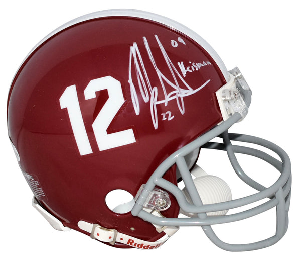Mark Ingram, former Heisman Trophy winning running back for the Crimson Tide, has hand signed this Alabama Riddell mini helmet at a private signing. He included the inscription "09 Heisman". This item comes with a certificate of authenticity (COA) from Beckett Authentication Services and was signed in the presence of one of their representatives. You will receive a serial-numbered COA along with a matching serial-numbered sticker on the helmet. The authenticity can be verified online by entering the serial number.Item pictured may not be the exact item you will receive. It will be similar quality, and we guarantee your satisfaction.