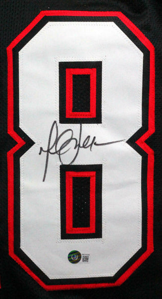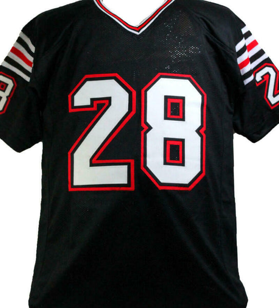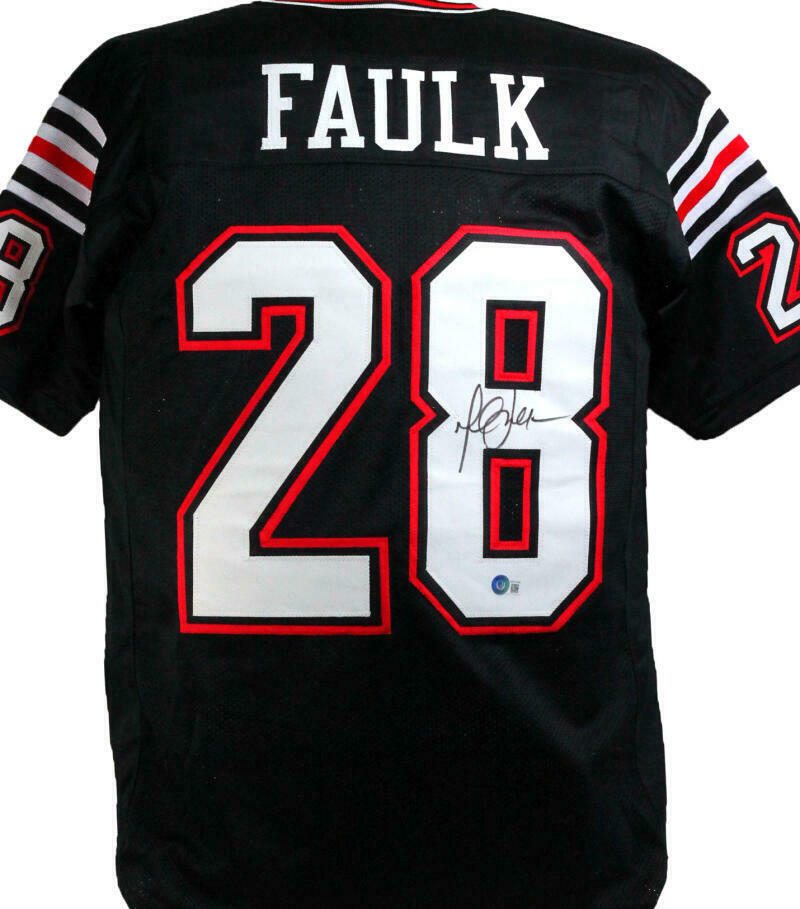 Marshall Faulk Autographed Black College Style Jersey- Beckett W Holo *Black THIS IS NOT AN NCAA JERSEY. THIS HAS NO TAGS, NO LOGOS, NO EMBLEMS. This is a Marshall Faulk of the San Diego State Aztecs hand autographed custom made (Non Name Brand) authentic style (Stitched Letters and Numbers) jersey. This item has a Beckett Witnessed Authentication, which comes with a numbered hologram and a generic Beckett Certificate of Authenticity. You can view this item on the Beckett website, it shows when and where the item was signed. It was signed either at a public autograph appearance or a private signing. Although you may not receive this exact item, the item you receive is virtually identical, brand new, and in great shape. Jersey size is XL.